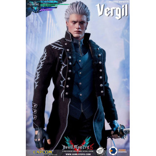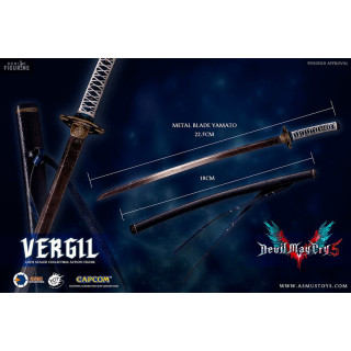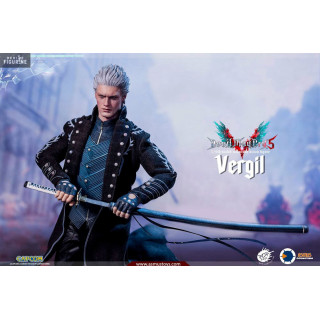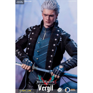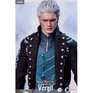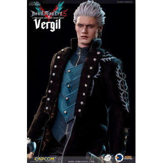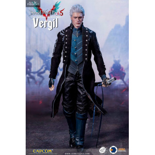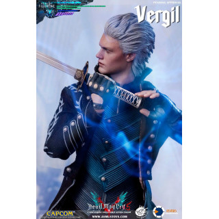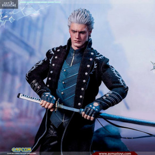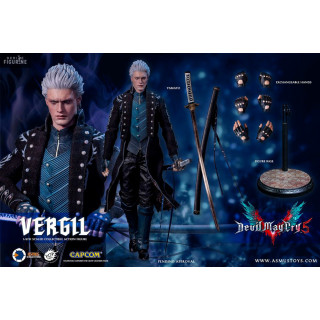 Figurine officielle de Vergil mesurant environ 31 centimètres de haut, à l'échelle 1/6. Le fabricant est Asmus Collectible.