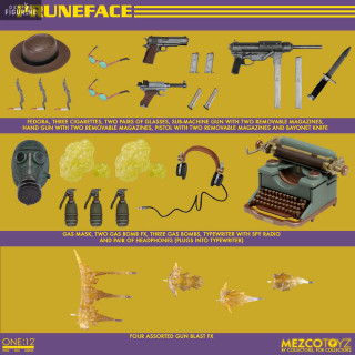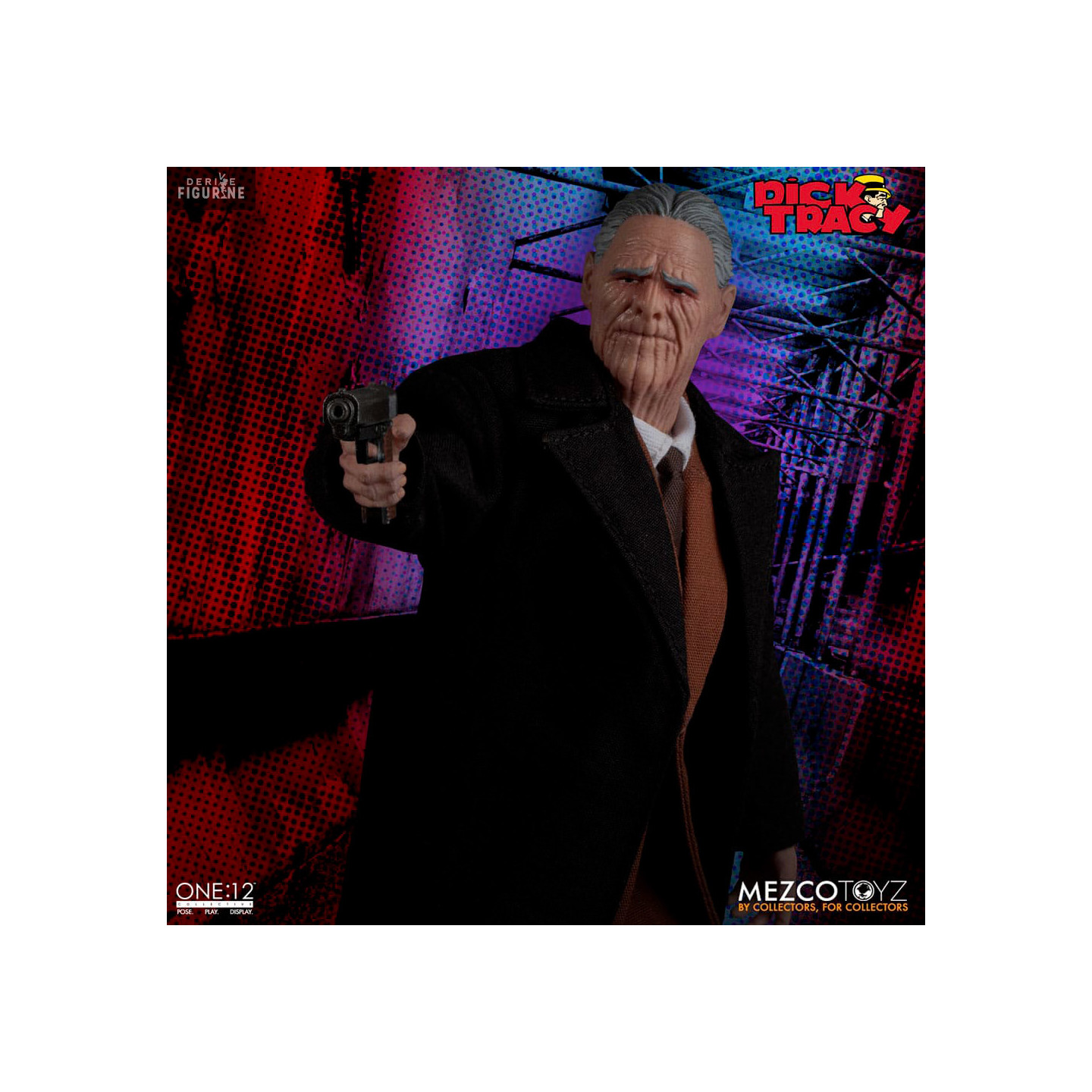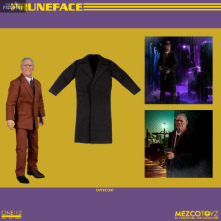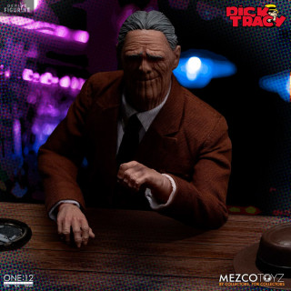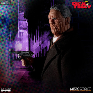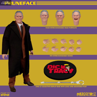 Dans Dick Tracy, Pruneface est un méchant emblématique que l'on reconnaît aisément à son visage qui a des traits bien particuliers puisqu'il semble assez vieux à cause des rides de son visage alors qu'en réalité, c'est un jeune homme. Voici sa figurine de la collection des One:12.
