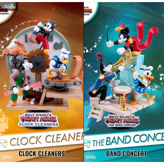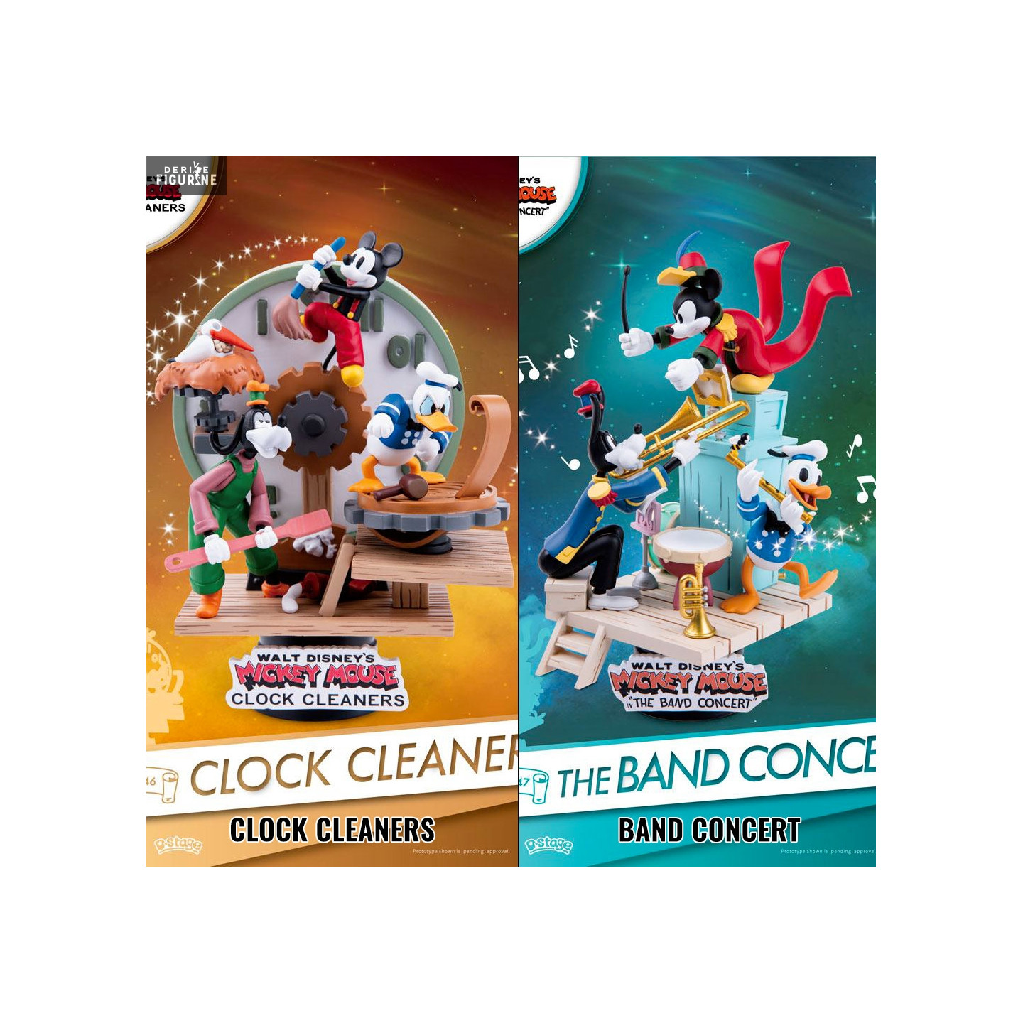 Figurine officielle de Mickey Mouse au choix entre la version Clock Cleaners ou Band Concert en PVC mesurant environ 15 centimètres de haut. Elle est issue de la collection D-Stage. Le fabricant est Beast Kingdom.