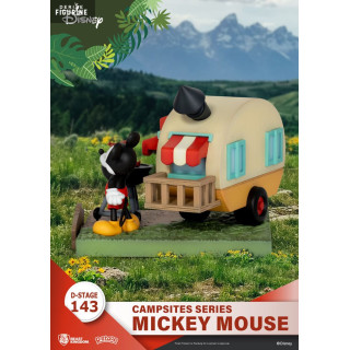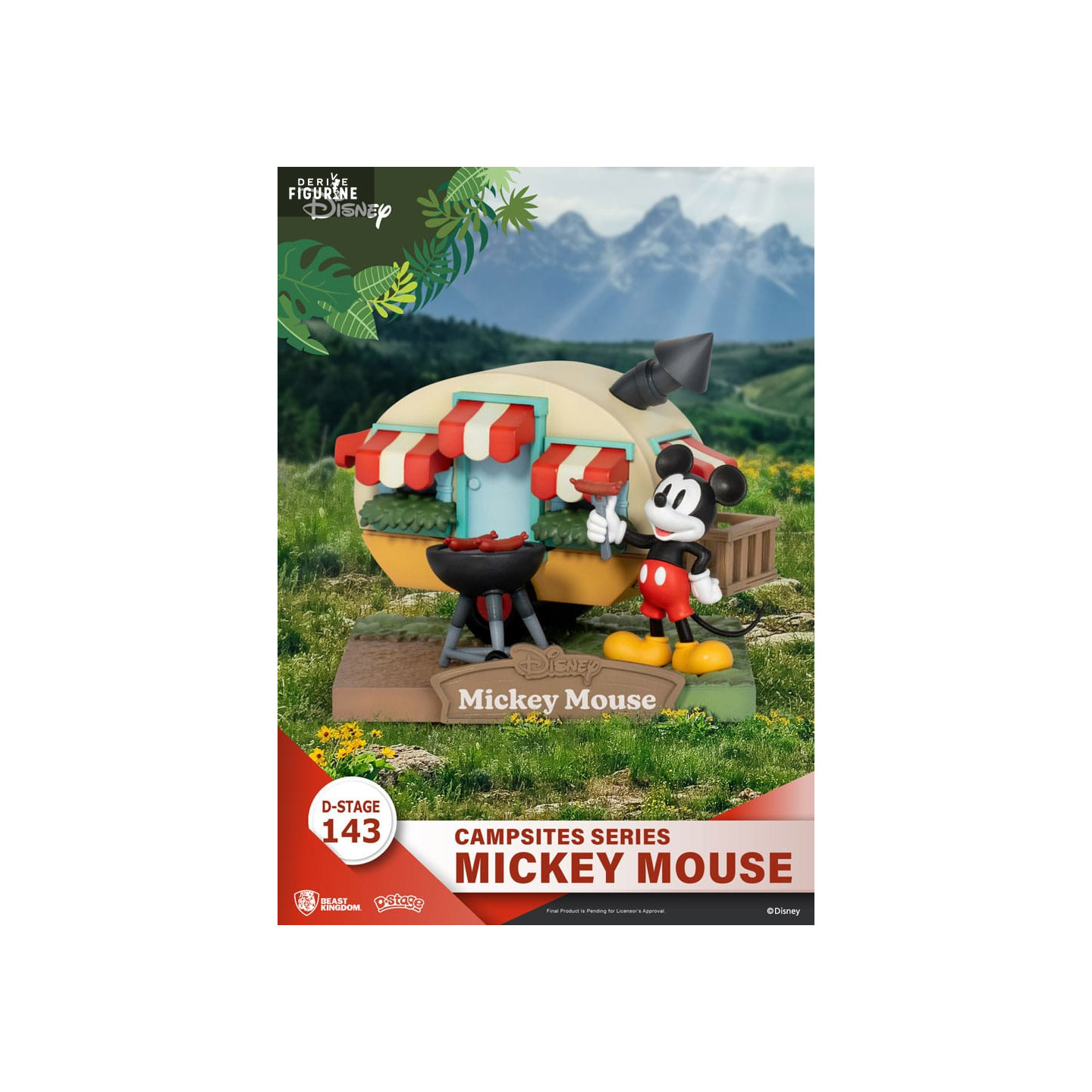 Figurine officielle de Mickey Mouse, Campsite Series en PVC mesurant environ 10 centimètres de haut. Elle est issue de la collection D-Stage. Le fabricant est Beast Kingdom.