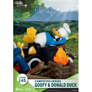 Figurine officielle de Dingo (Goofy) & Donald Duck, Campsite Series en PVC mesurant environ 10 centimètres de haut. Elle est issue de la collection D-Stage. Le fabricant est Beast Kingdom.