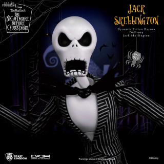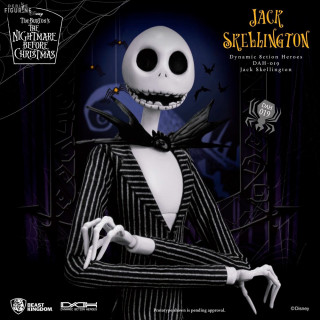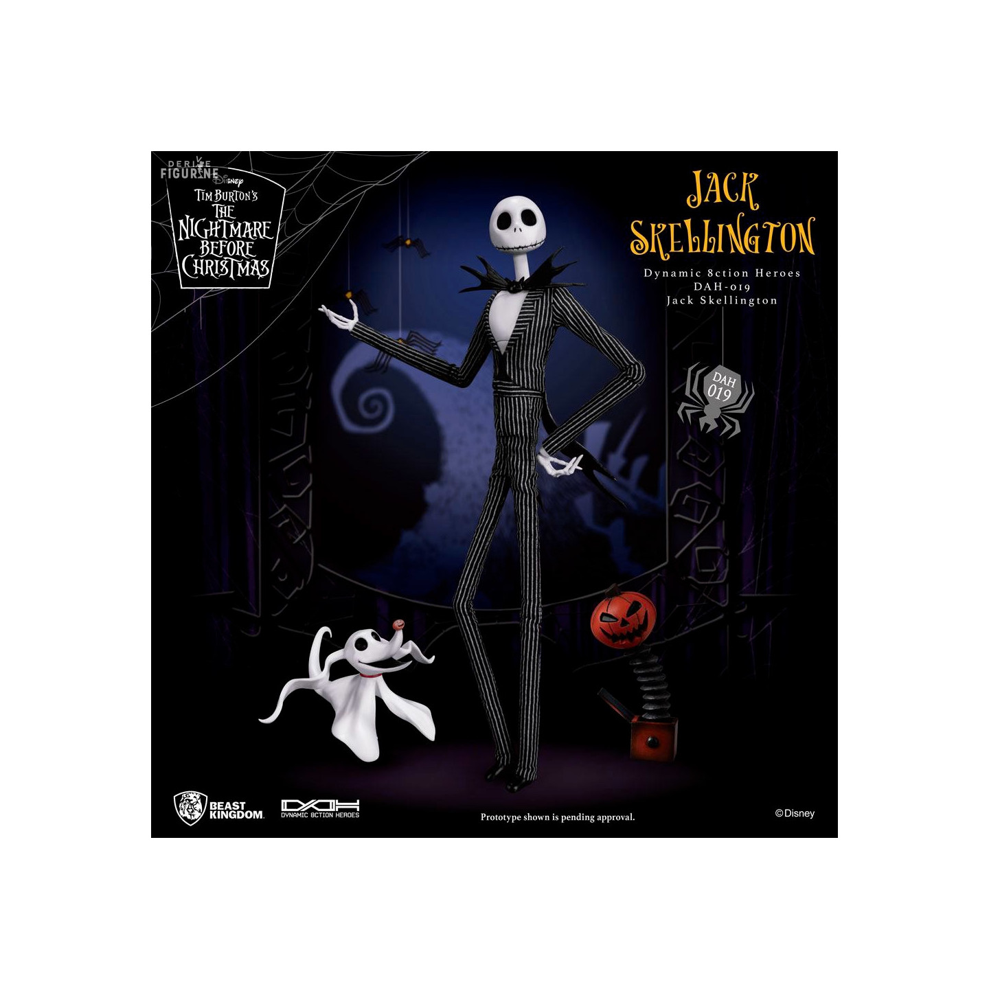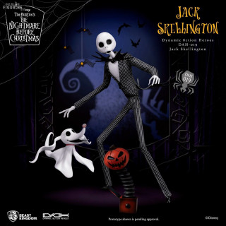 Figurine officielle de Jack Skellington et Zero mesurant environ 21 centimètres de haut, à l'échelle 1/9. Elle est issue de la collection Dynamic Action Heroes. Le fabricant est Beast Kingdom.