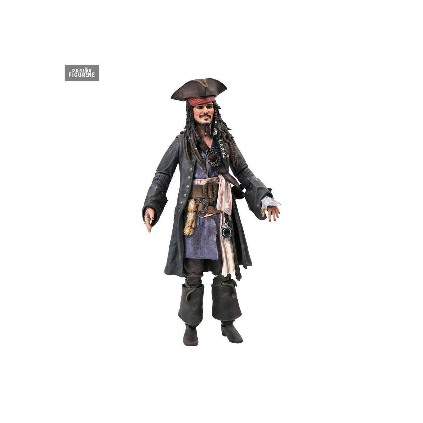 Figurine officielle Jack Sparrow en PVC mesurant environ 18 centimètres de haut. Le fabricant est Diamond Select Toys.