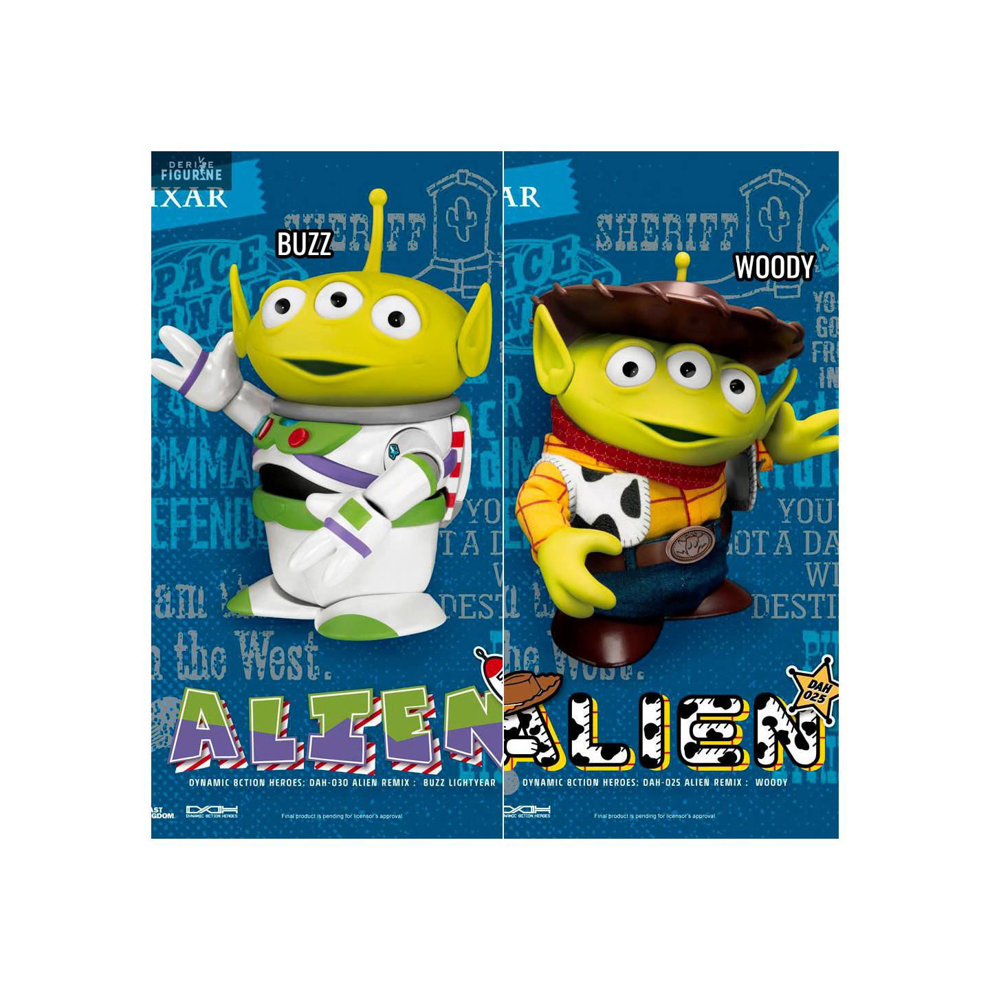 Figurine officielle de l'Alien au choix entre la version Buzz l'éclair ou Woody mesurant environ 16 centimètres de haut. Elle est issue de la collection Dynamic Action Heroes. Le fabricant est Beast Kingdom.