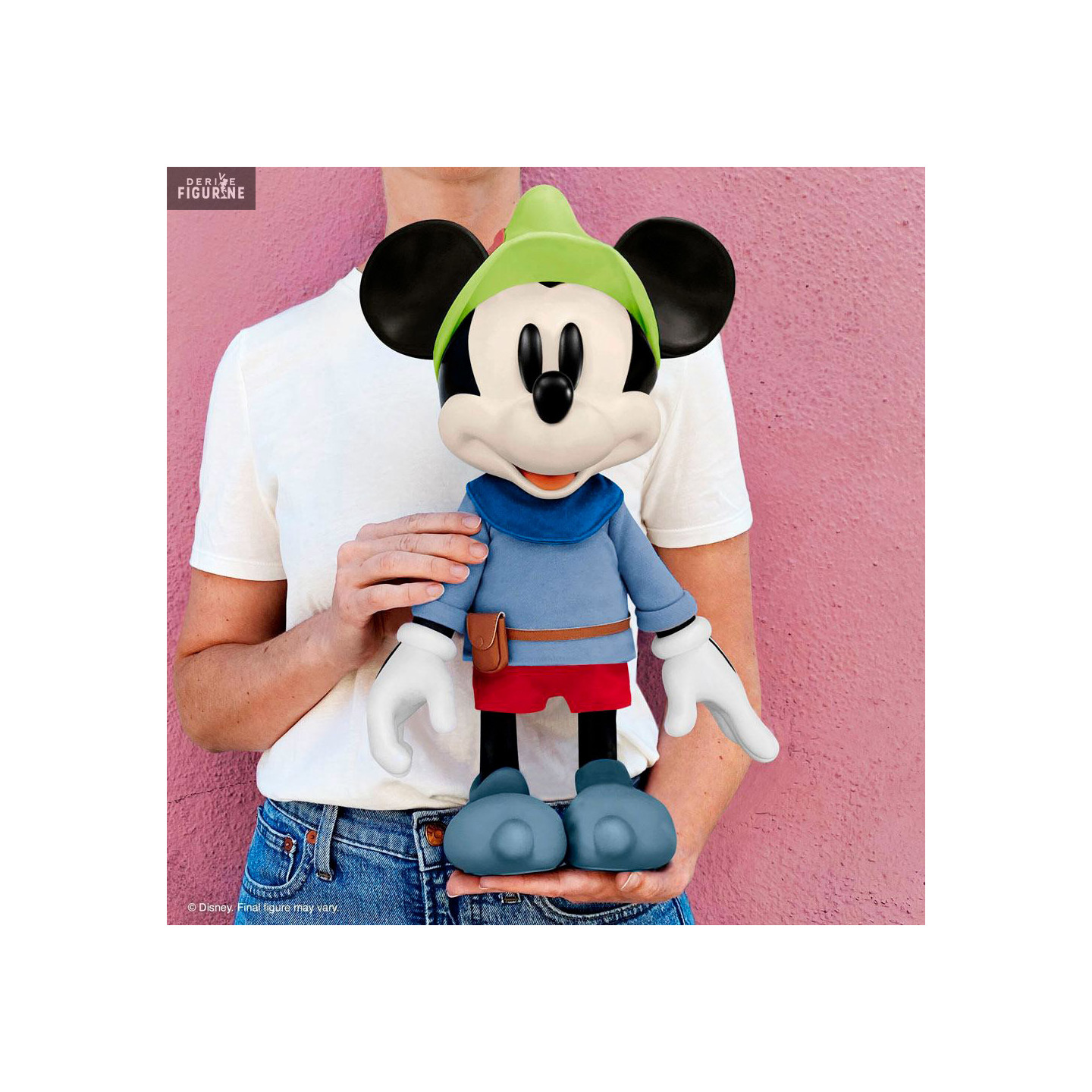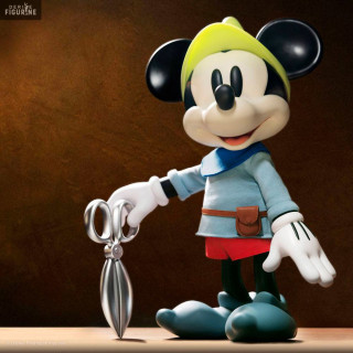Dans Le Brave Petit Tailleur, Mickey Mouse est une souris pour le moins commune, car il est un simple tailleur. Malheureusement pour lui, un paysan a laissé traîner ses oreilles et lancé une rumeur et le voilà maintenant à devoir anéantir un géant. Ce n'était pas vraiment prévu mais il est donc avec sa paire de ciseaux prêt à en découdre. Cette figurine, en plus d'être imposante par sa taille possède des vêtements en tissu.