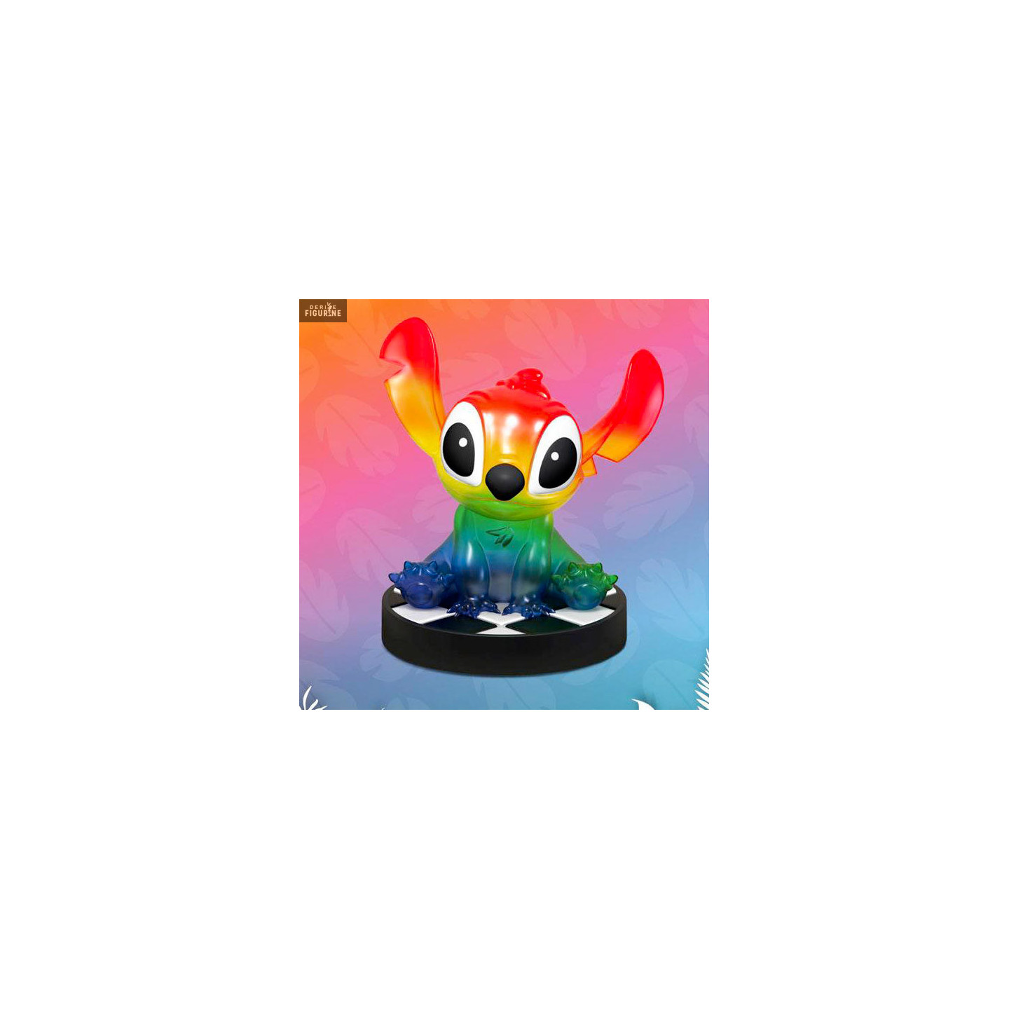 Si vous êtes fan de Disney et plus particulièrement de l'expérience 626, vous allez adorer cette petite figurine. Pour une fois, on peut voir que Stitch est assez sage, peut-être qu'il se demande encore ce qu'il a fait pour devenir un arc-en-ciel. Qu'il ne se fasse pas de soucis, il est très beau comme cela.