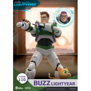 Figurine officielle de Buzz Lightyear en PVC mesurant environ 15 centimètres de haut. Elle est issue de la collection D-Stage. Le fabricant est Beast Kingdom.