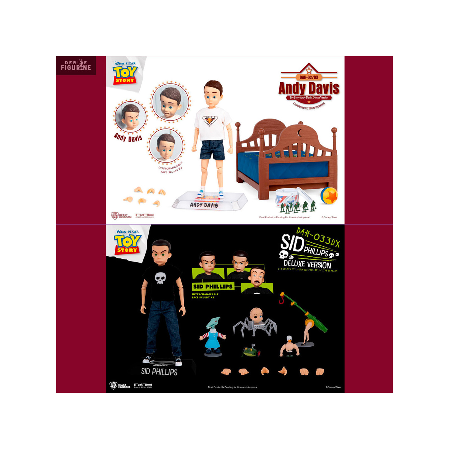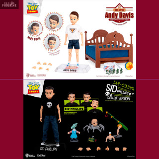 Vous avez adoré les films de Toy Story ? Dans ce cas, vous serez heureux de pouvoir replonger dans cet univers avec ces deux figurines. Dans un premier temps, vous pouvez vous offrir celle de Sid Phillips, le voisin redouté par tout les jouets, car comme vous pouvez le voir avec les accessoires, il n'est pas vraiment du genre à en prendre soin. L'autre possibilité est Andy Davis, un jeune garçon beaucoup plus calme qui adore ses jouets et c'est réciproque. Les deux garçons possèdent des visages de rechanges et des mains interchangeables, ainsi que des jouets pour Sid, et son lit et des petits soldats pour Andy.