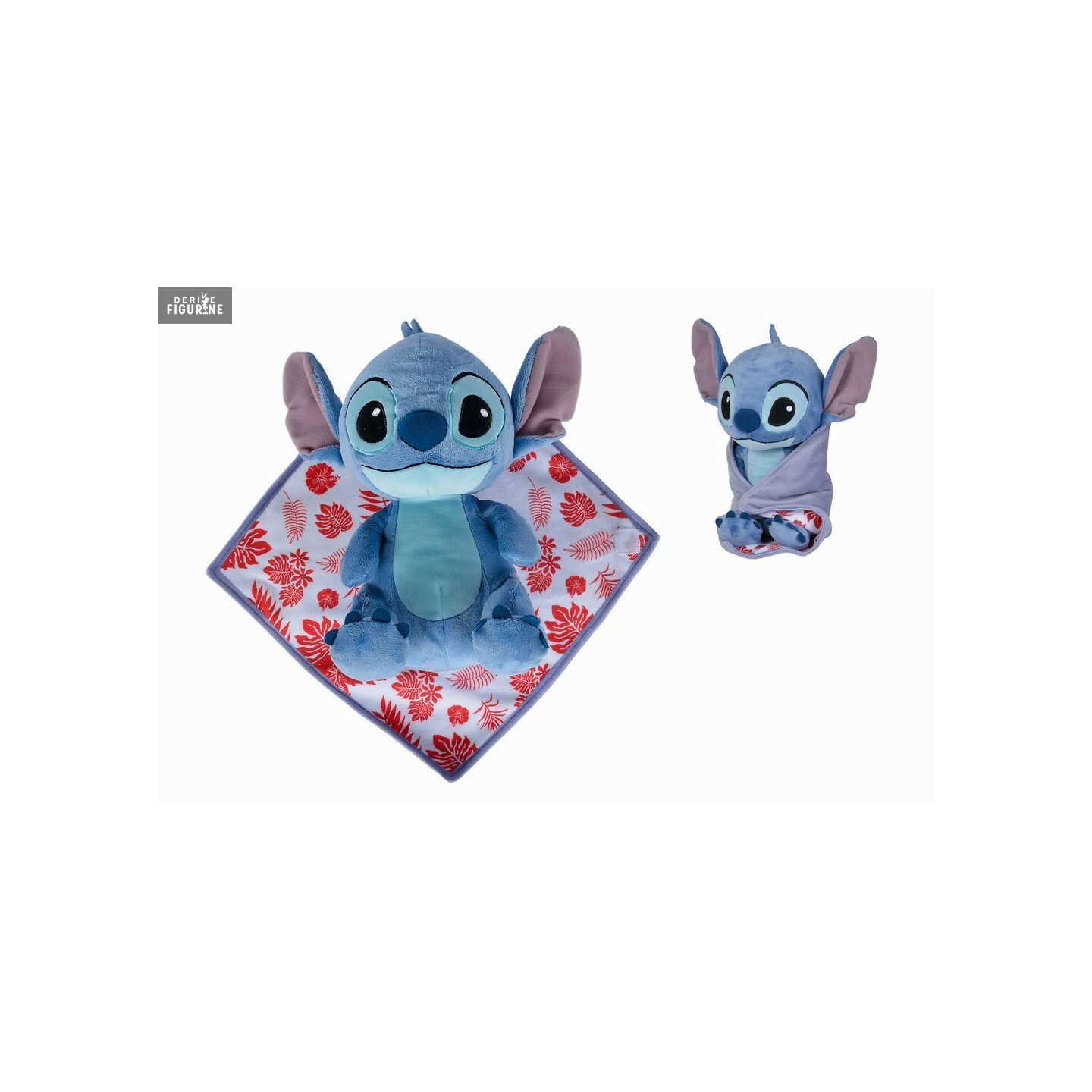 Peluche officielle de Stitch, Blankee mesurant environ 25 centimètres de haut. Le fabricant est Simba Toys.