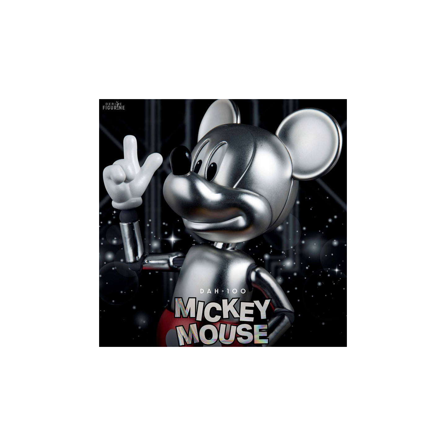Figurine officielle de Mickey Mouse mesurant environ 16,5 centimètres de haut, à l'échelle 1/9. Elle est issue de la collection Dynamic 8ction Heroes. Le fabricant est Beast Kingdom.
