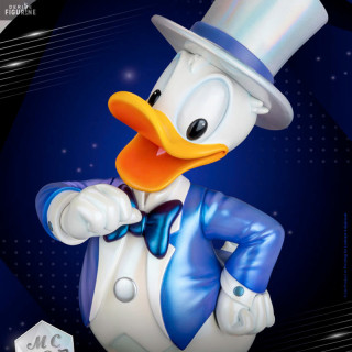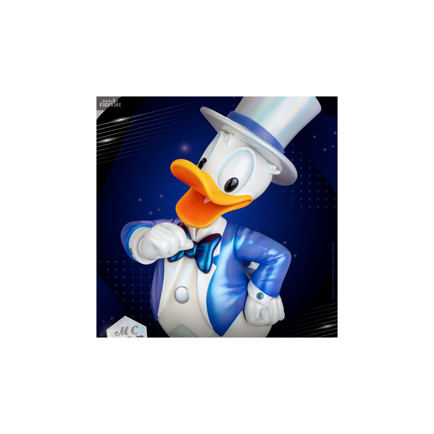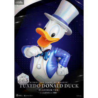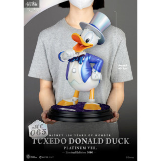 Figurine officielle de Tuxedo Donald Duck Platinum en résine mesurant environ 40 centimètres de haut. Elle est issue de la collection Master Craft. Le fabricant est Beast Kingdom.
