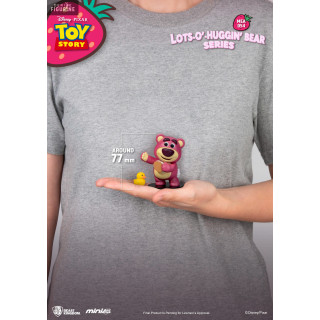 Figurine officielle et aléatoire de Lotso en PVC mesurant environ 8 centimètres de haut. Elle est issue de la collection Mini Egg Attack. Le fabricant est Beast Kingdom.