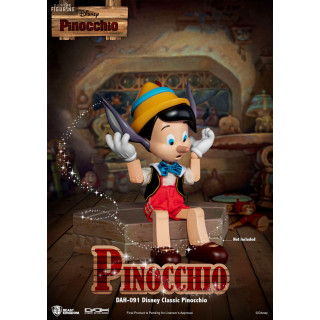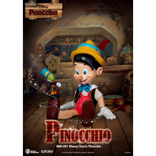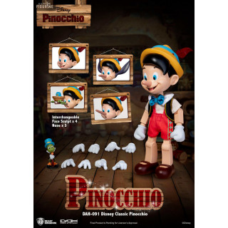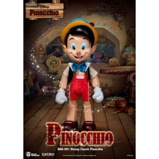 Figurine officielle de Pinocchio mesurant environ 18 centimètres de haut, à l'échelle 1/9. Elle est issue de la collection Dynamic 8ction Heroes. Le fabricant est Beast Kingdom.