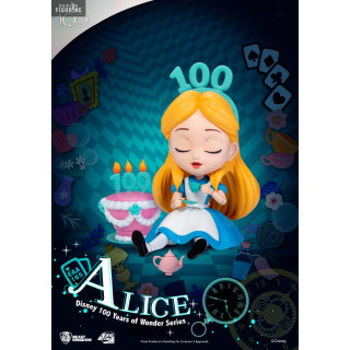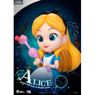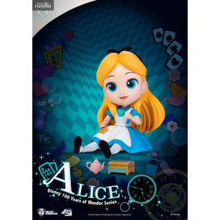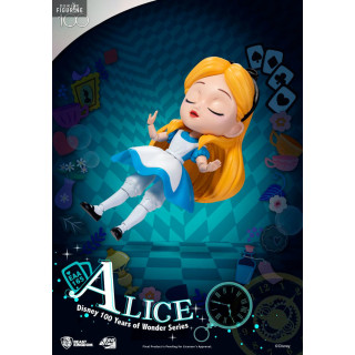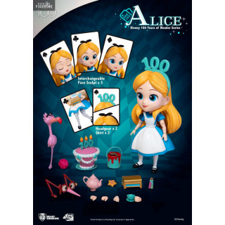 Alice est une jeune fille qui s'est assoupi et s'est donc retrouvé dans un monde un peu étrange. Elle y a vécu pas mal de péripéties, et vous avez justement quelques unes des créatures qu'elle a rencontré comme les lunettes ou un flamant rose qui sert de maillet pour le croquet. Elle a aussi plusieurs visages et d'autres accessoires pour l'exposer de nombreuses façons différentes, dont une où elle prend une tasse de thé pour l'anniversaire de Disney.