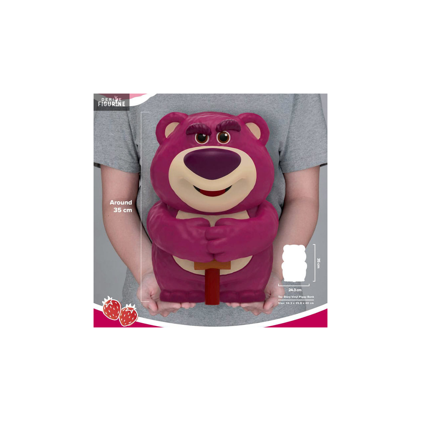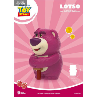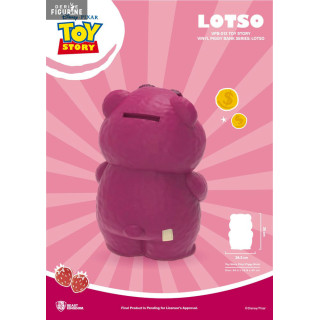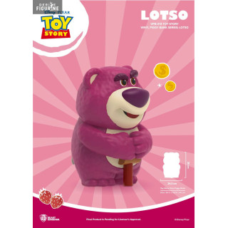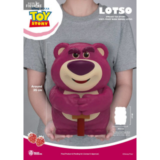 Tirelire figurine officielle de Lotso en vinyle mesurant environ 35 centimètres. Le fabricant est Beast Kingdom.