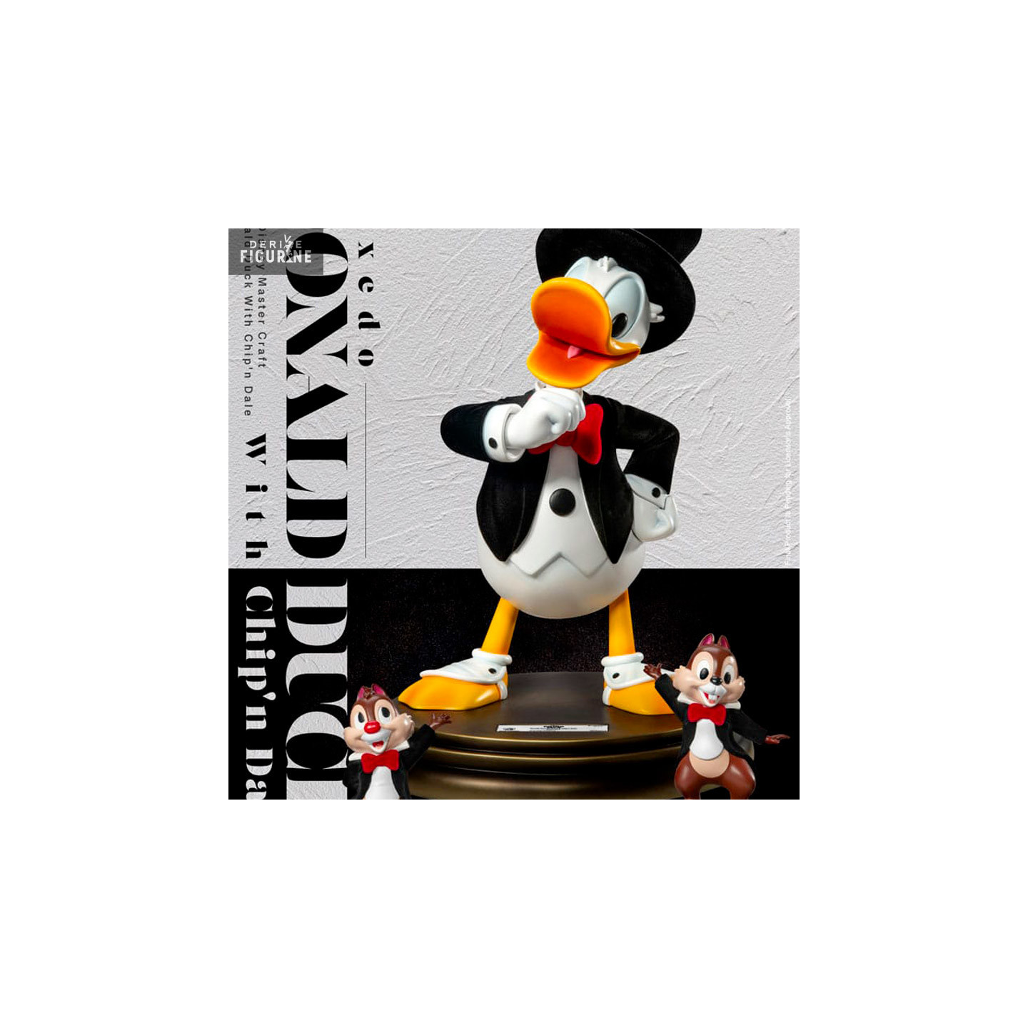 Figurine officielle de Tuxedo Donald Duck (Tic & Tac) en résine mesurant environ 40 centimètres de haut. Elle est issue de la collection Master Craft. Le fabricant est Beast Kingdom.