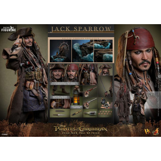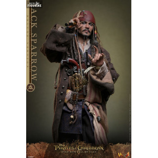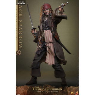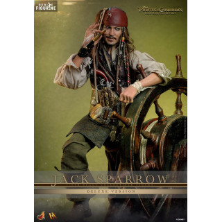 Figurine officielle Jack Sparrow Deluxe, DX mesurant environ 30 centimètres de haut, à l'échelle 1/6. Le fabricant est Hot Toys.