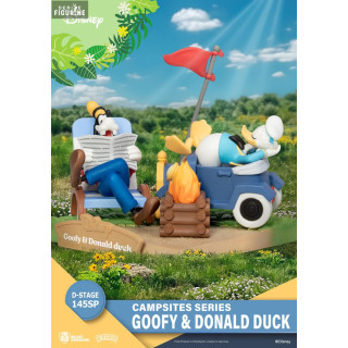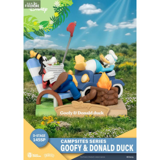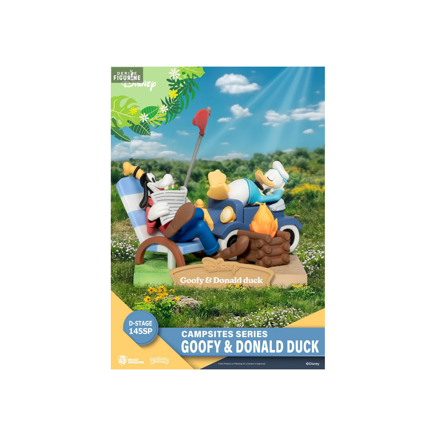 Figurine officielle de Dingo & Donald Duck Special Edition, Campsite Series en PVC mesurant environ 10 centimètres de haut. Elle est issue de la collection D-Stage. Le fabricant est Beast Kingdom.