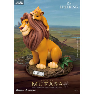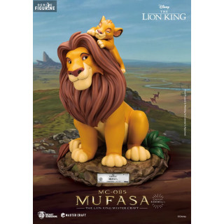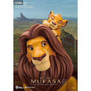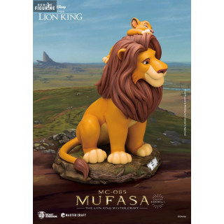Figurine officielle de Mufasa en résine mesurant environ 36 centimètres de haut. Elle est issue de la collection Master Craft. Le fabricant est Beast Kingdom.