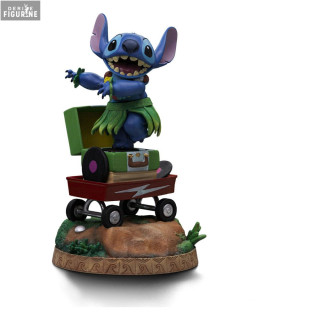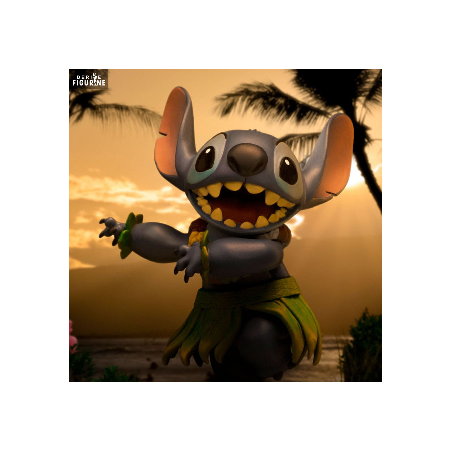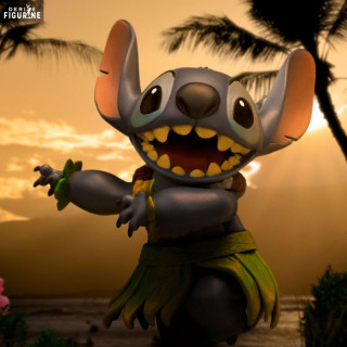 Figurine officielle de Stitch, Hula en résine mesurant environ 17 x 10 x 10 centimètres, à l'échelle 1/10. Elle est issue de la collection Art Scale. Le fabricant est Iron Studios.