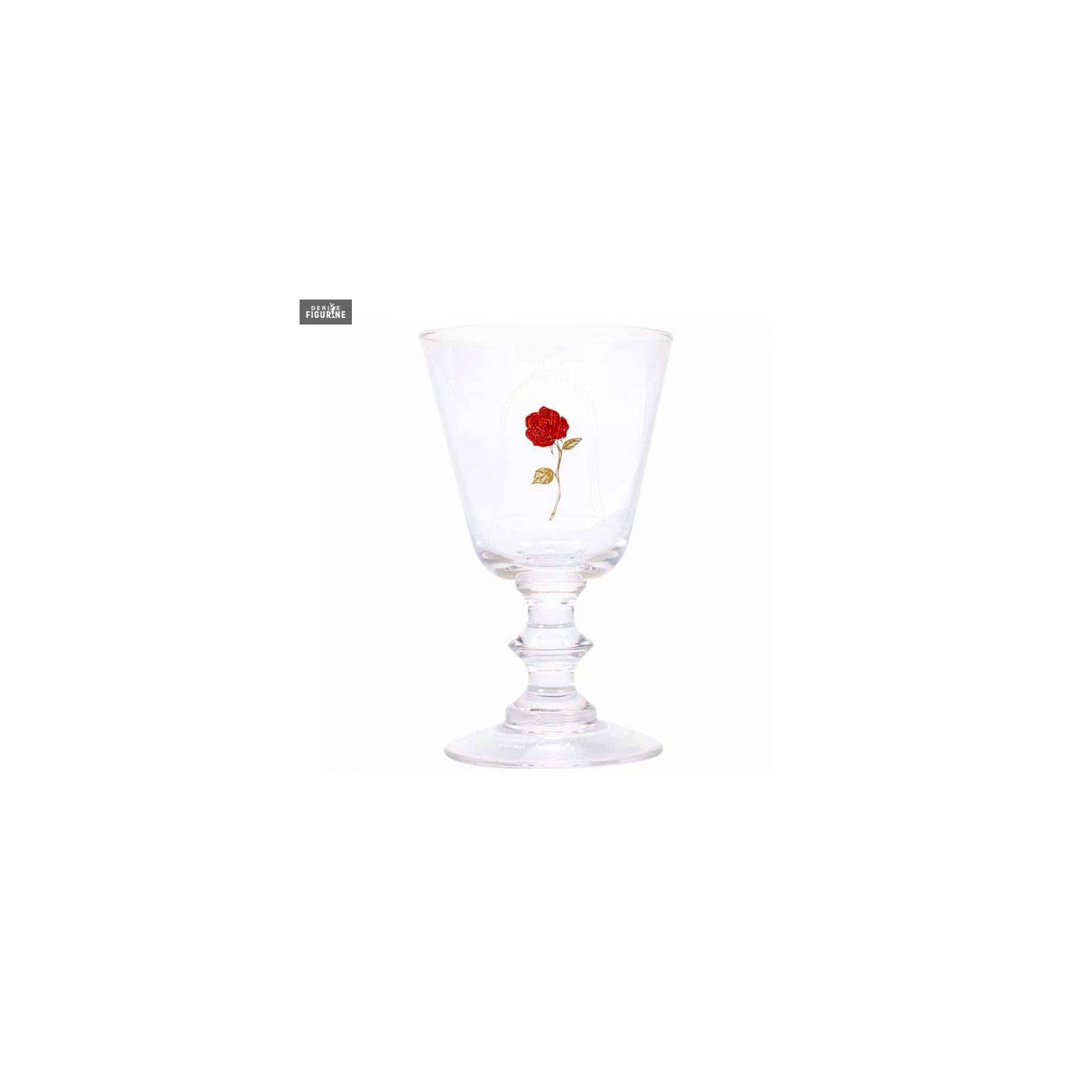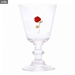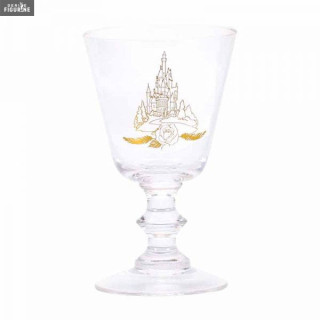 Voici un très beau verre à pied qui aurait pu être utilisé dans le château de la Bête sans aucun problème. Sur l'une des faces, on voit la rose de couleur rouge qui représente le compte à rebours de la Bête et sur l'autre son château qui lui est peint en doré.