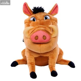 Peluche officielle de Pumbaa mesurant environ 25 centimètres de haut. Le fabricant est Simba.