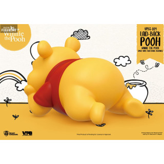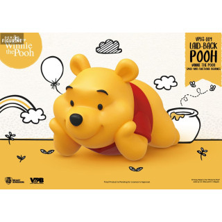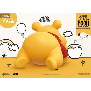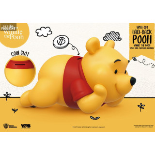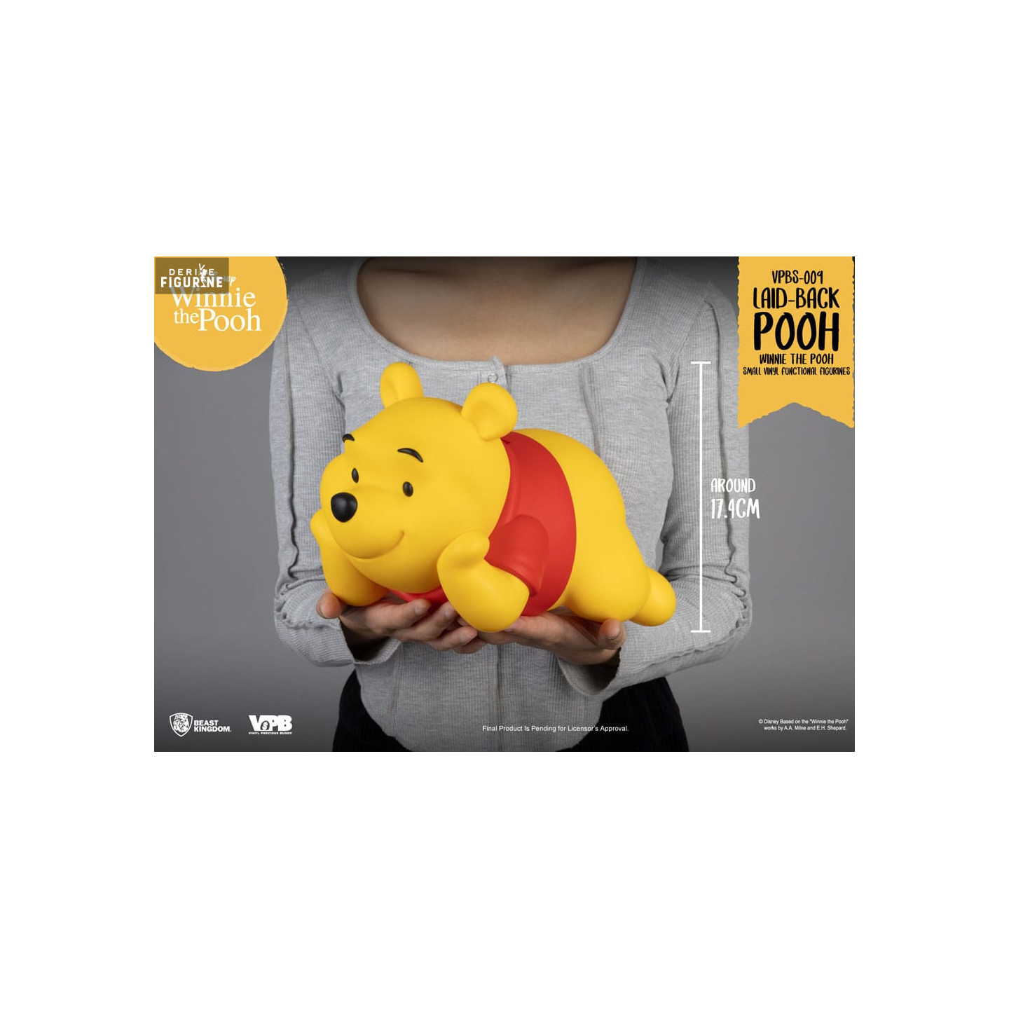 Tirelire figurine officielle de Winnie, Laid-back en vinyle mesurant environ 17 centimètres de haut. Elle est issue de la collection Small Functional Figurine. Le fabricant est Beast Kingdom.
