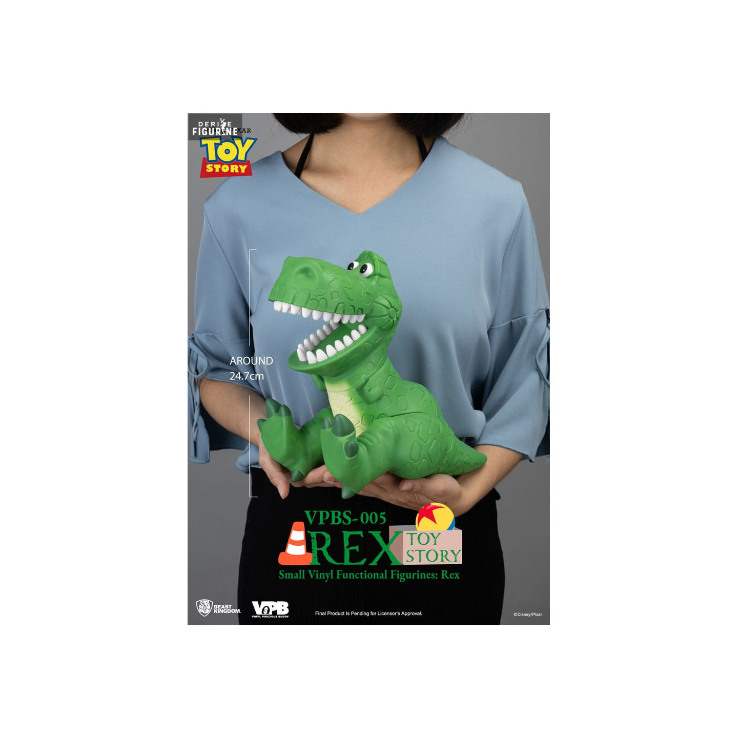 Figurine officielle de Rex en vinyle mesurant environ 25 centimètres de haut. Elle est issue de la collection Small Functional Figurines. Le fabricant est Beast Kingdom.