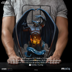 Figurine officielle de Chernabog en résine mesurant environ 40 x 32 x 19 centimètres, à l'échelle 1/10. Elle est issue de la collection Deluxe Art Scale. Le fabricant est Iron Studios.