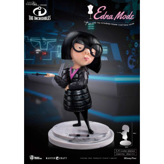 Figurine officielle de Edna Mode en résine mesurant environ 39 x 24 x 19 centimètres, à l'échelle 1/4. Elle est issue de la collection Master Craft. Le fabricant est Beast Kingdom.