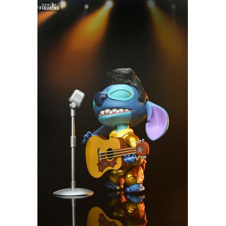 Dans Lilo & Stitch, Stitch (Expérience 626) est une créature extraterrestre génétiquement modifiée pour semer le chaos, mais il finit par découvrir la valeur de la famille et de l’amitié grâce à Lilo, une petite fille hawaïenne qui l’adopte. Tout au long du film, Stitch développe une passion pour Elvis Presley, imitant son style et ses chansons dans des moments mémorables. Cette figurine rend hommage à cette facette hilarante et attachante du personnage.