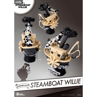 Figurine officielle de Steamboat Willie en PVC, mesurant environ 15 x 10 x 8 centimètres. Elle est issue de la collection D-Stage. Le fabricant est Beast Kingdom.