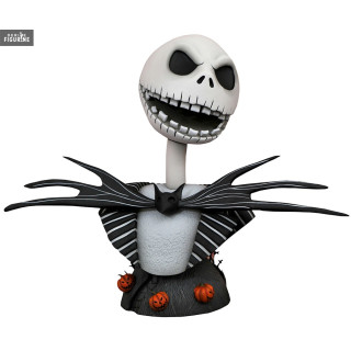 Buste officiel en résine de Jack Skellington d'environ 25 centimètres de haut à l'échelle 1/2. Le fabricant est Diamond Select Toys.