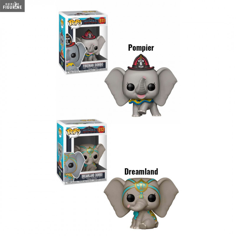 Figurine officielle au choix entre Dumbo Pompier (fireman) ou Dreamland en vinyle, mesurant environ 9 centimètres de haut. Le fabricant est Funko.