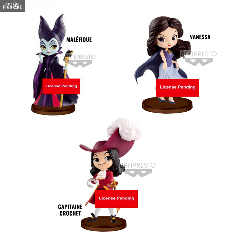 Figurine officielle au choix entre Maléfique, Vanessa ou Capitaine Crochet mesurant environ 7 centimètres de haut. Elle est issue de la collection Q Posket. Le fabricant est Banpresto.