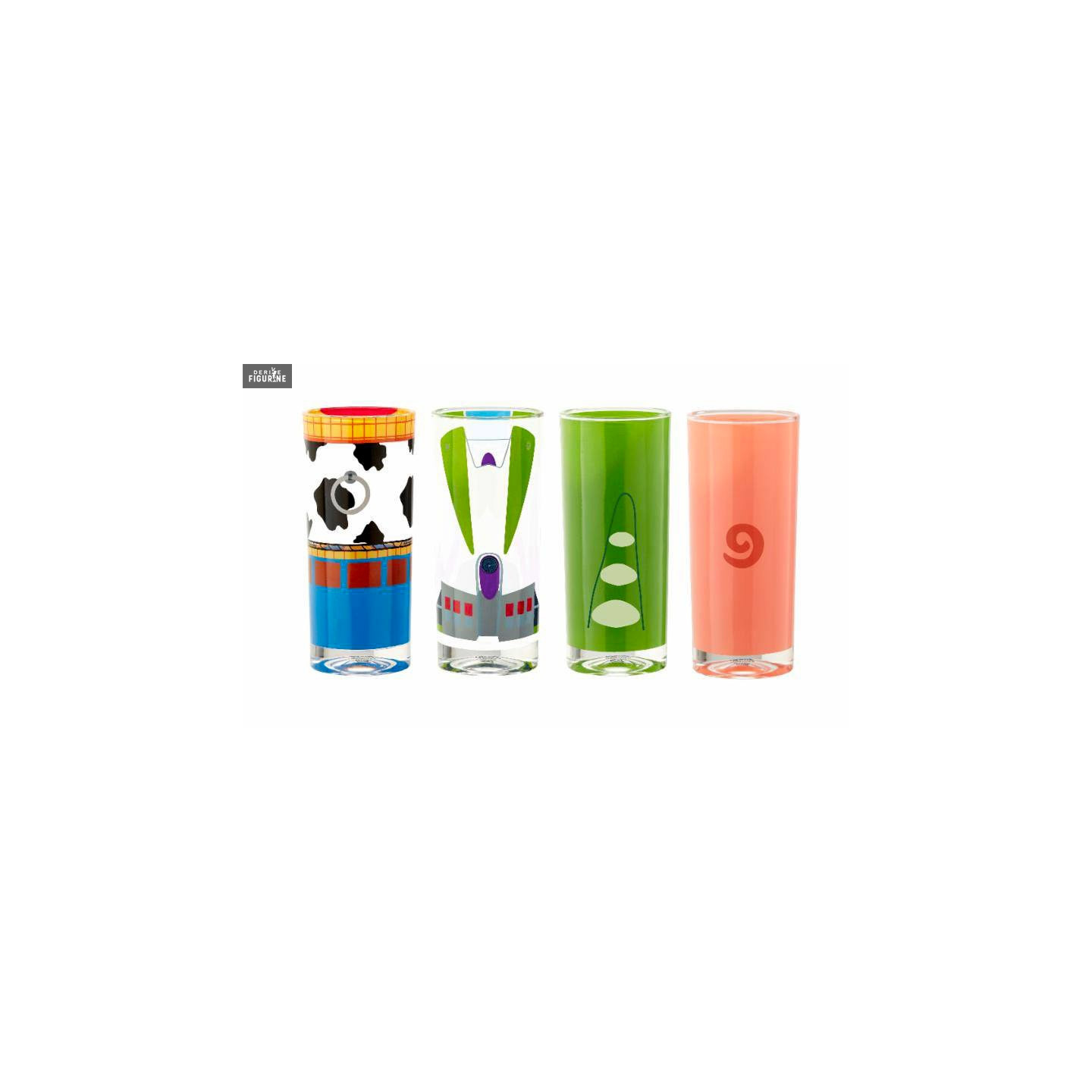 Set de quatre verres Toy Story 4 Buzz, Woody, Rex & Hamm. Contenance : 35 cl. Le fabricant est Funko.