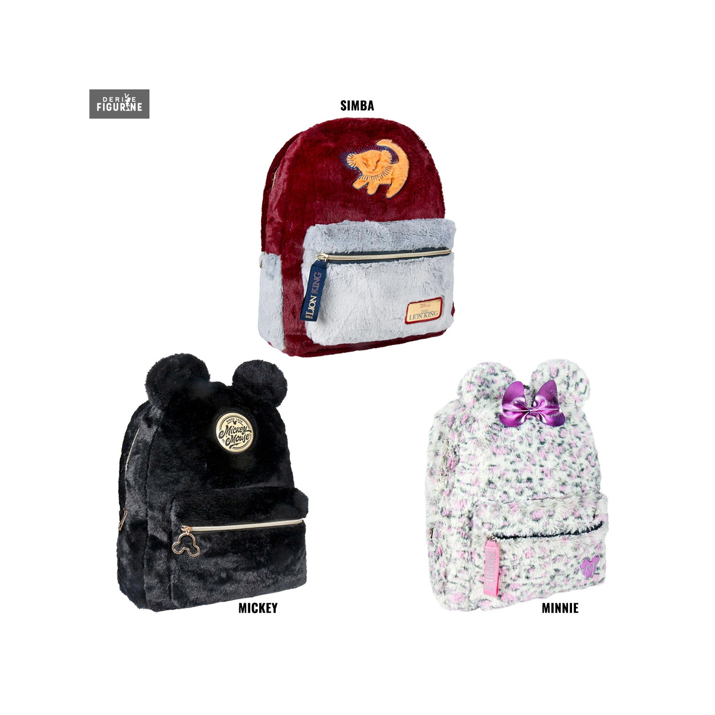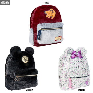 Sac à dos officiel au choix entre Minnie, Mickey ou Simba en polyester, mesurant environ 28 x 33 x12 centimètres. Le fabricant est Cerda.