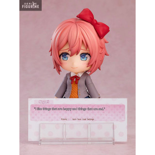 Figurine officielle de Sayori en PVC mesurant environ 10 centimètres de haut. Elle est issue de la collection Nendoroid. Le fabricant est Good Smile Company.