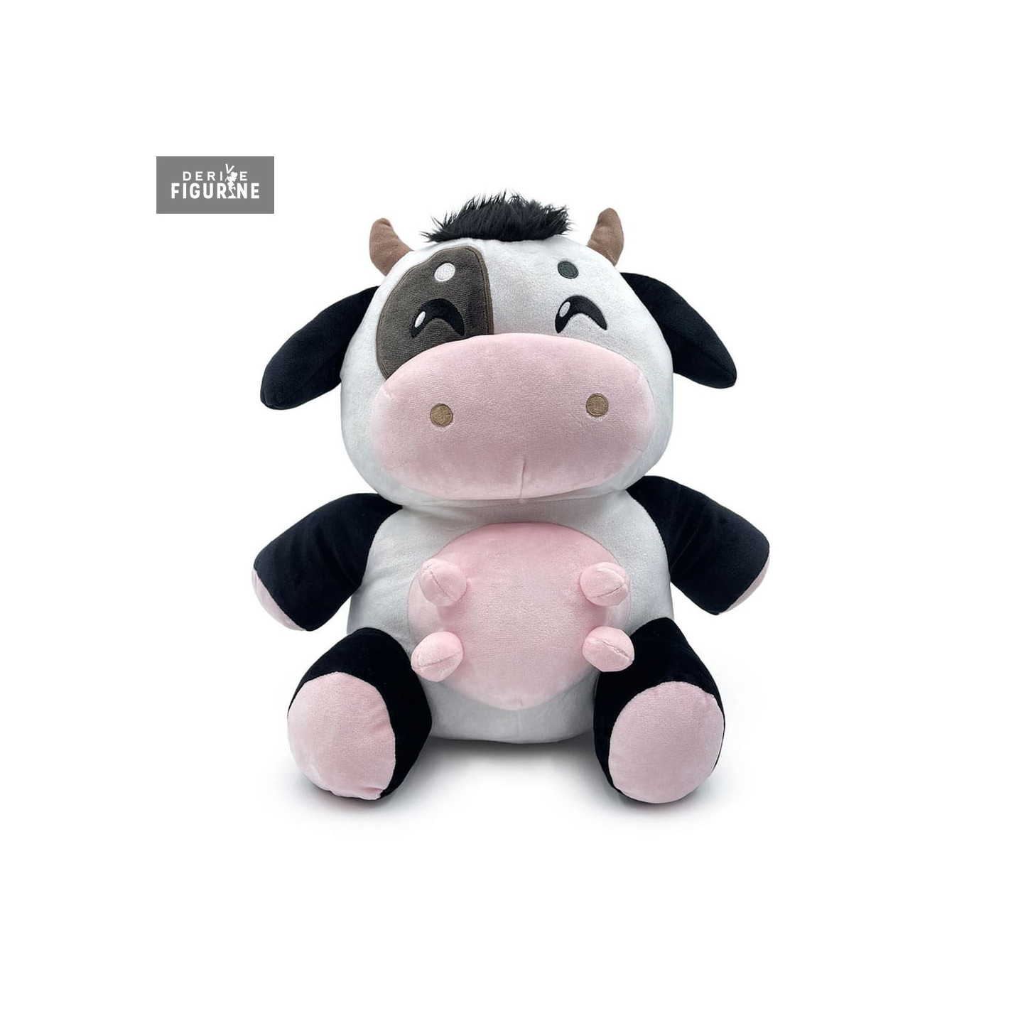 Peluche officielle de Mr. Cow en 100% polypropylène mesurant environ 30 centimètres de haut. Le fabricant est Youtooz.