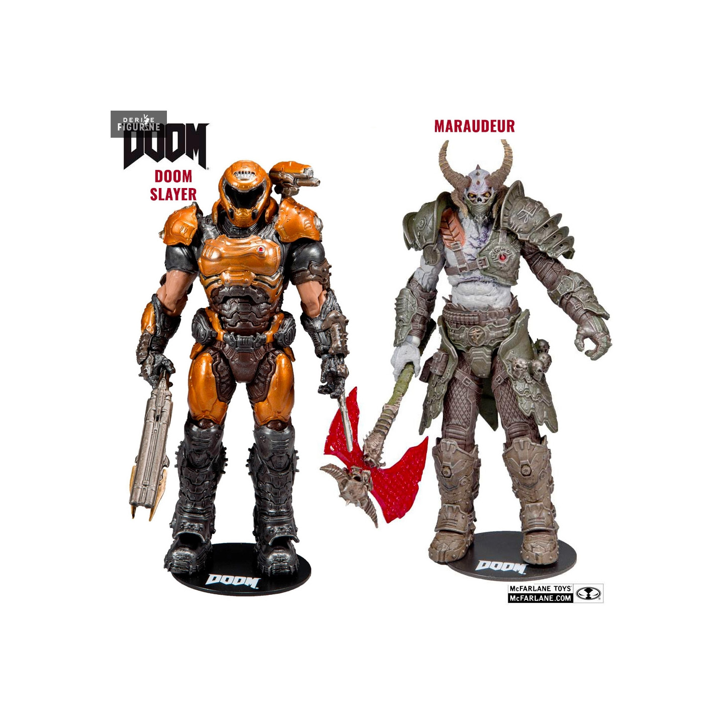 Figurine officielle au choix entre Doom Slayer ou Maraudeur mesurant environ 18 centimètres de haut. Le fabricant est McFarlane Toys.