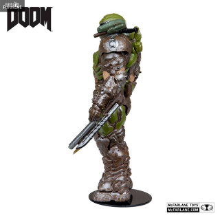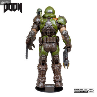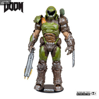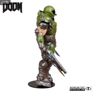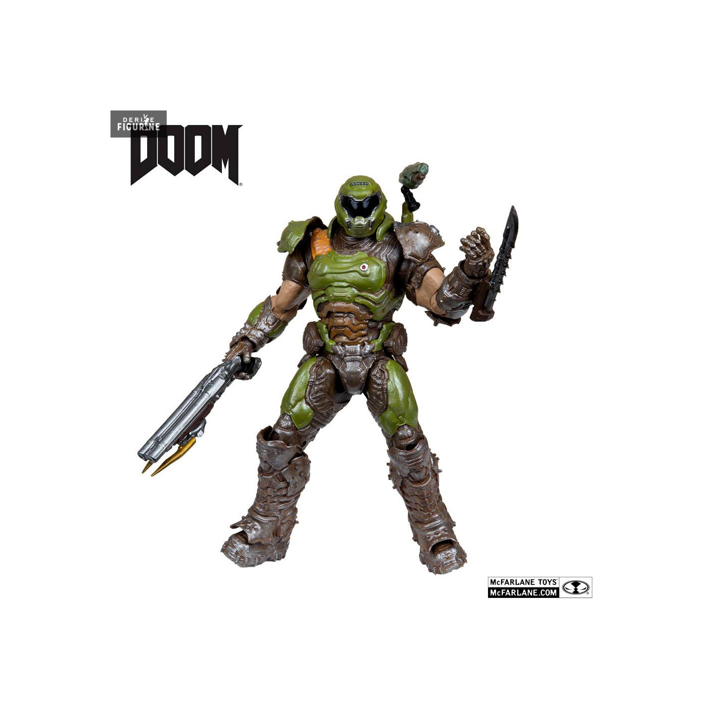 Figurine officielle de Doom Slayer mesurant environ 18 centimètres de haut. Le fabricant est McFarlane Toys.