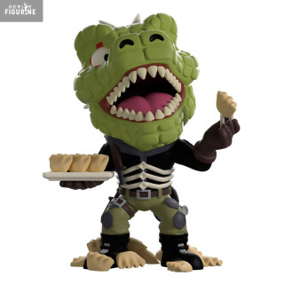 Avec sa tête de reptile aux dents bien visibles, son armure de fortune, et son assiette de gyozas en main (parce qu’il faut bien manger entre deux bastons), Caiman s’affiche ici dans un look à la fois drôle et fidèle. Son design exagéré et cartoonisé par Youtooz donne une touche légère à ce perso pourtant brutal.