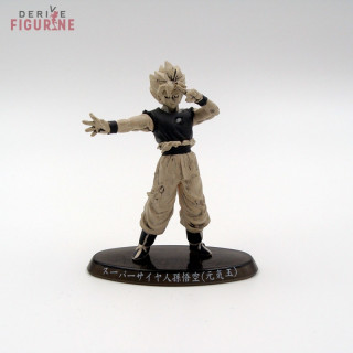 Figurine d'occasion et officielle de Sangoku en ABS/PVC qui mesure environ 7 centimètres de haut. Sangoku est dans sa forme Super Saiyan. Il s'agit d'un objet d'occasion en parfait état issu de la collection Soul of Hyper Figuration. Le fabricant est Bandai, vendu sans boîte.