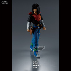 Figurine officielle de Android 17 en PVC mesurant environ 17 centimètres de haut. Elle est issue de la collection Solid Edge Works. Le fabricant est Banpresto.