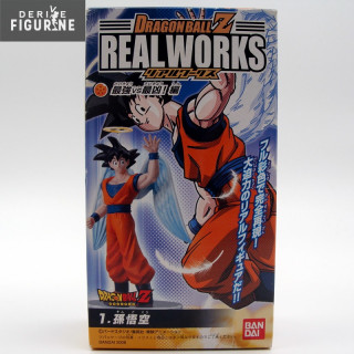Figurine officielle de Son Goku en ABS/PVC d'environ 11 centimètres de haut. Son Goku fait signe de la main pour dire au revoir. Il s'agit d'une figurine de collection issue de la gamme Real Works Serie 6 et elle est fabriquée par Bandai.