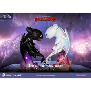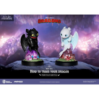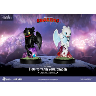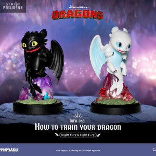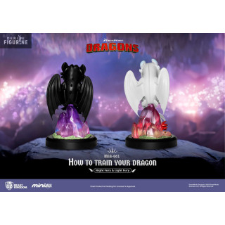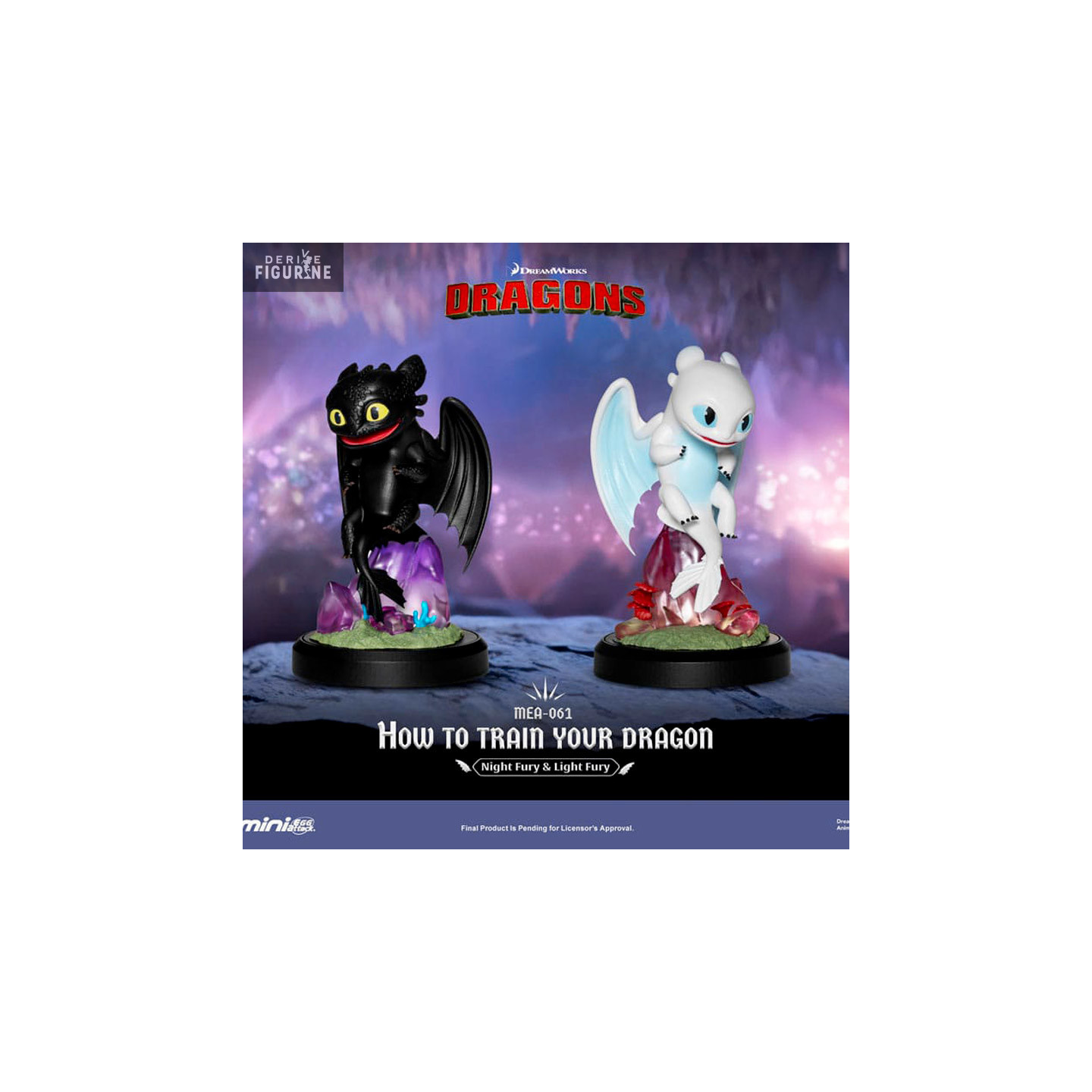 Figurine officielle de Krokmou et Light Fury en PVC mesurant environ 10 centimètres de haut. Elle est issue de la collection Mini Egg Attack. Le fabricant est Beast Kingdom.