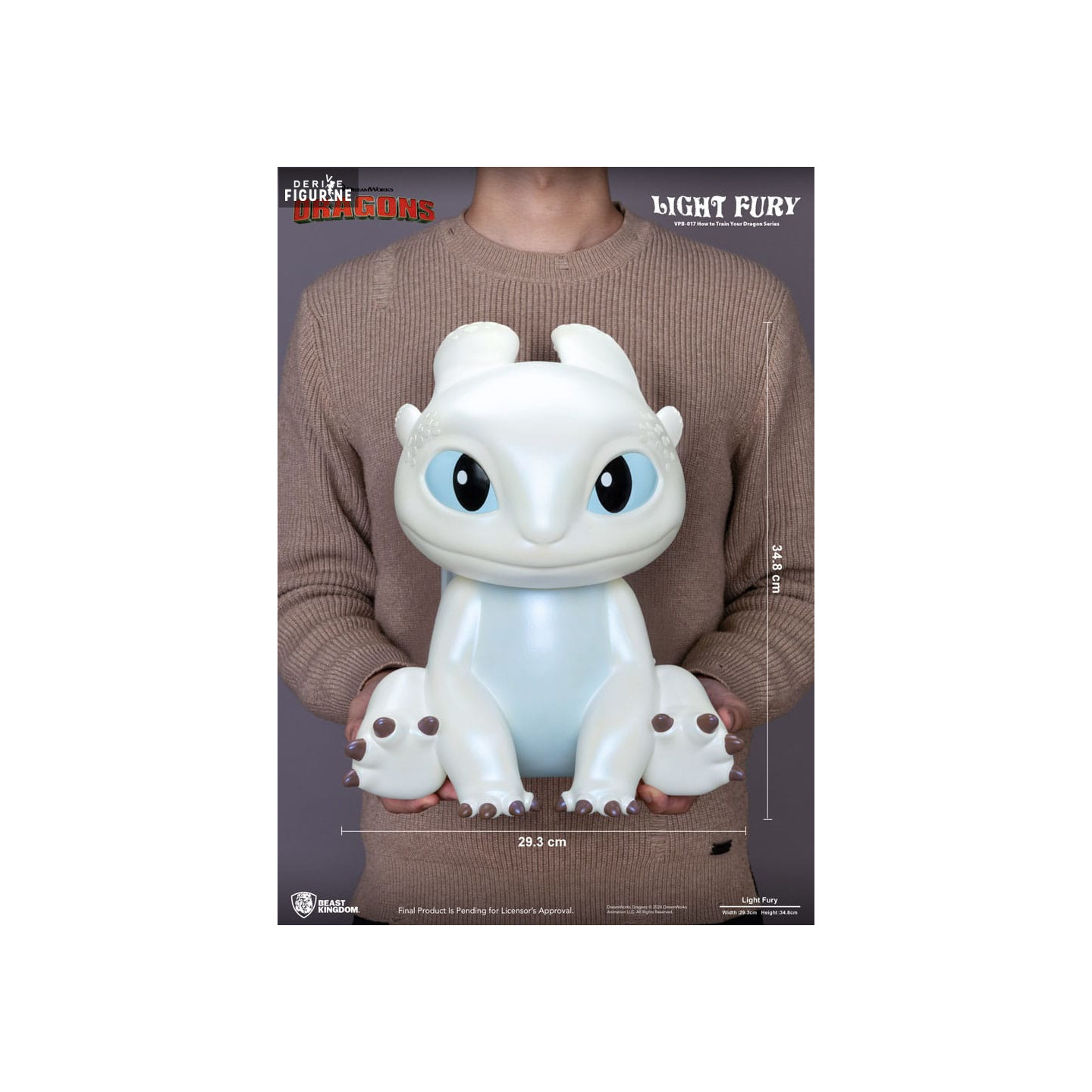 Tirelire figurine officielle de Light Fury en vinyle mesurant environ 35 centimètres. Le fabricant est Beast Kingdom.