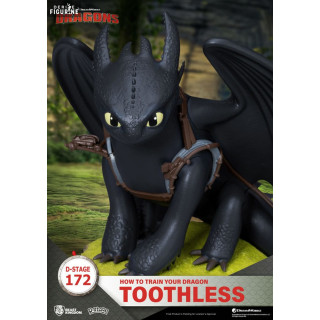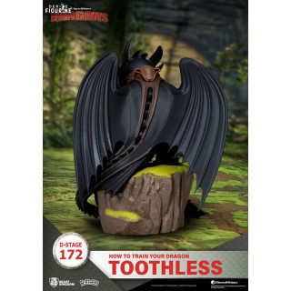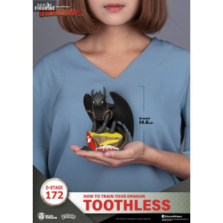 Figurine officielle de Krokmou Toothless en PVC mesurant environ 14 centimètres de haut. Elle est issue de la collection D-Stage. Le fabricant est Beast Kingdom.