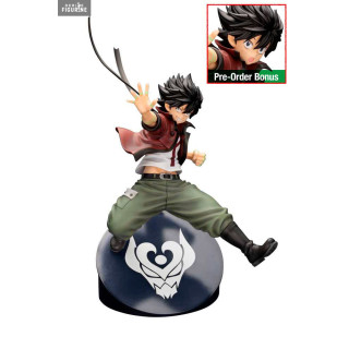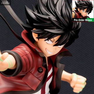 Dans Edens Zero, on retrouve le héros Shiki Granbell habitant dans un parc d'attraction désert où il est le seul humain... Il a été élevé par des robots et la particularité de Shiki, c'est qu'il est capable d'utiliser l'Ether Gear... Voici sa figurine ARTFX en version Bonus Edition soit avec un visage supplémentaire et il y a même par endroit de la peinture UV (lumière noire) qui a été utilisée.