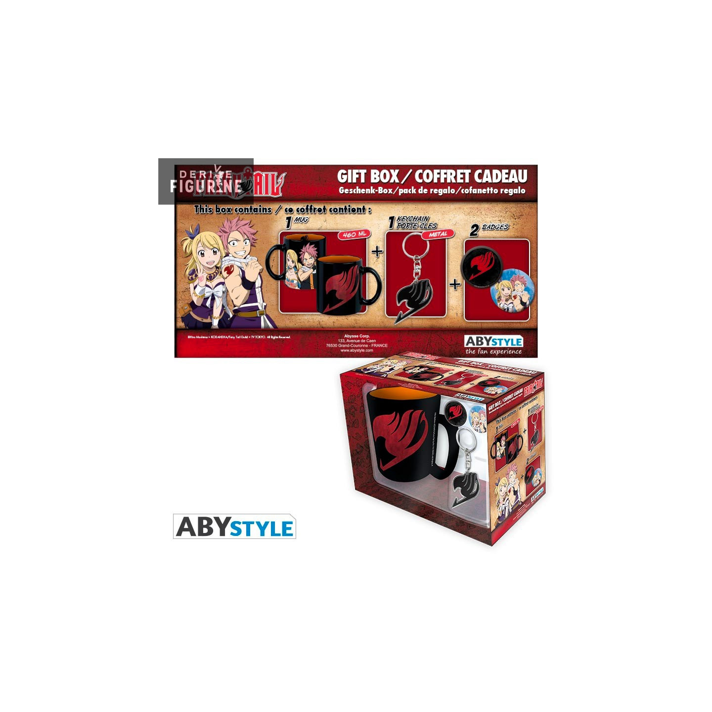 Vous avez lu tous les tomes du manga Fairy Tail, et vu tous les épisodes de l'anime ? Vous êtes donc un fan de la série et ce coffret cadeau est l'objet qu'il vous faut. Il contient un mug de 46 cl, un porte-clés en métal et deux badges.